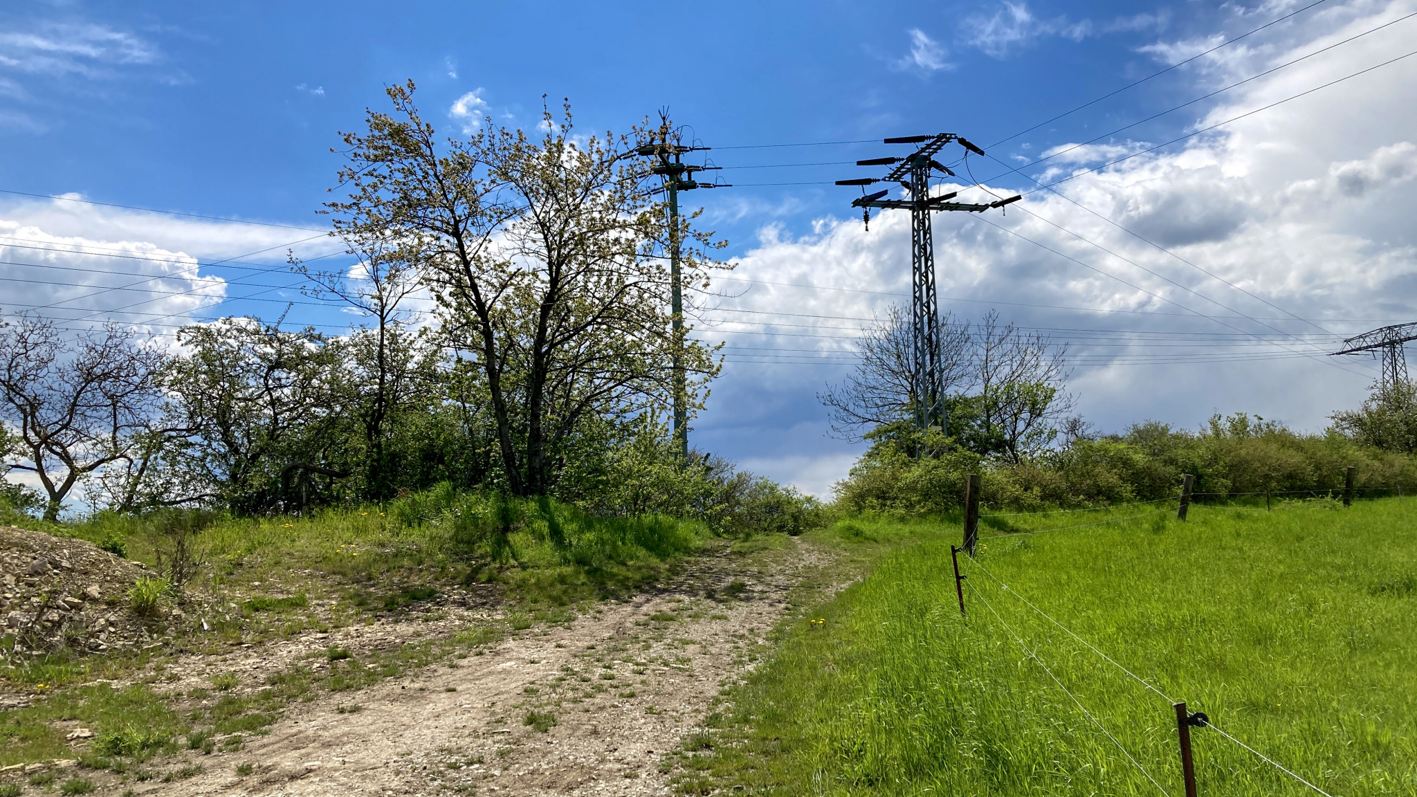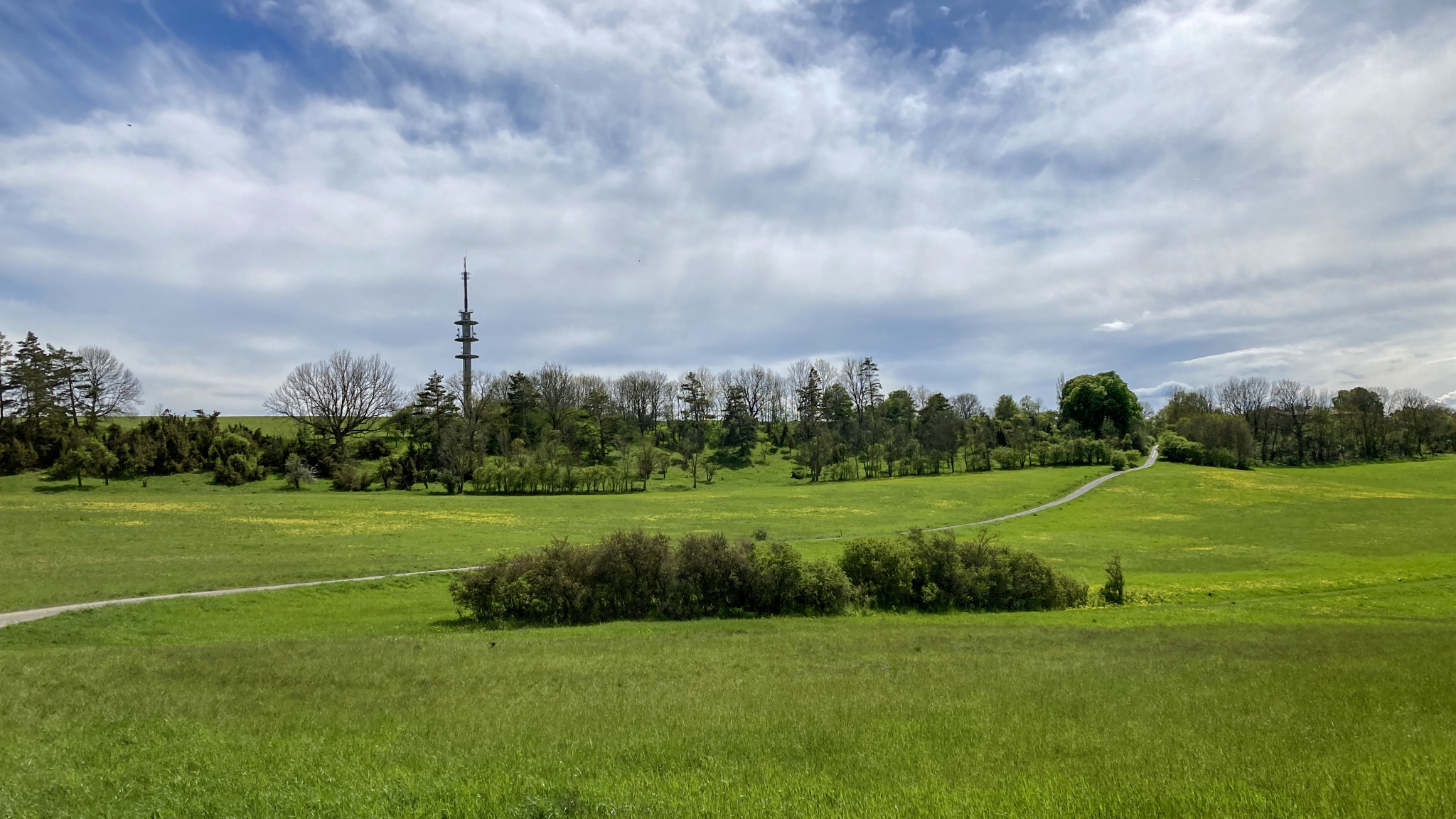 Der Weg führt zum Glück nicht ganz nach unten, sondern wir kommen auf einem mäßig aufsteigenden Weg wieder nach oben und erreichen die Hochebene bei den Coppanzer Windrädern. Hier erreichen wir den höchsten Punkt der Tour mit etwas über 400m. Von Coppanz sehen wir das Ziel der heutigen Wanderung: Den Cospoth mit seinem Sendemast. Doch der ist noch weit. Zunächst geht es wieder bergab, an einem alten Steinbruch vorbei bis Nennsdorf. Dort überqueren wir eine Straße und dann haben wir einen letzten Aufstieg zum Cospoth. Der Weg geht relativ steil durch den Wald, bis wir auf eine Wiese unter dem Gipfel kommen. Die ist über und über mit Himmelsschlüsselchen bedeckt! Wir gehen hier wieder querfeldein, direkt auf die Sendeanlage am Gipfel zu. Mit 399m ist das der der höchste Aussichtspunkt der Tour, von dem aus wir einen wunderschönen Blick auf Jena haben. Hier ist Zeit für eine ausgedehnte Pause.