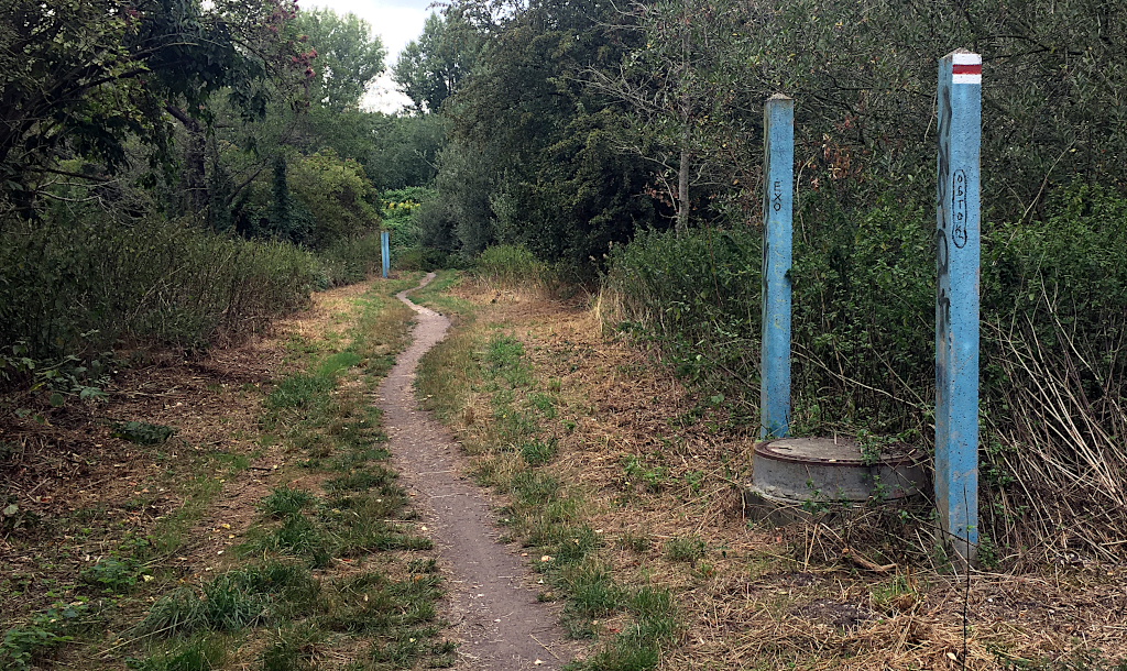 Es folgen Bahntunnel, versteckte Brücken über ausgetrocknete Bäche, Waldgebiete und Feldraine. Selten ist eine Straße in Sicht, aber schon hier merkt man, dass der Rand einer Großstadt alles andere ist als unberührte Natur. Überall findet man vergessene Zeugnisse unseres Schaffens, die teilweise zerfallen oder schon von der Natur zurückerobert worden sind.