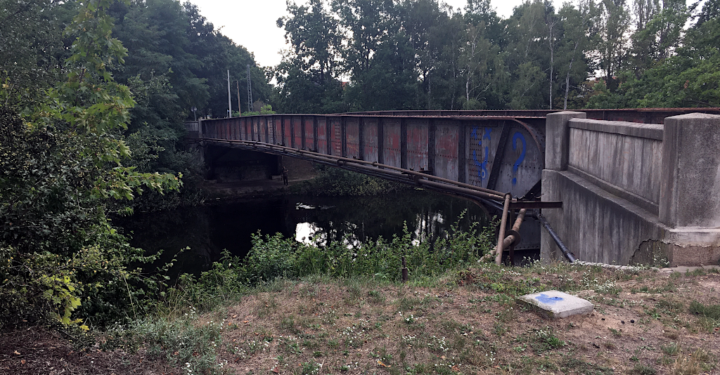 Es geht dann doch noch ein Stück weiter - in Taucha verirre ich mich auf dem Gelände eines Altenheims, langsam schleppe ich mich durch Wohngebiete, Gartenanlagen und erreiche endlich wieder die Autobahn. Die kann man tatsächlich an der Hinterseite eines Gewerbegebietes unterqueren! Dann nochmal an einem Fluss entlang. Das ist der Lösegraben und bei Tageslicht kann ich mir den Weg sehr reizvoll vorstellen.