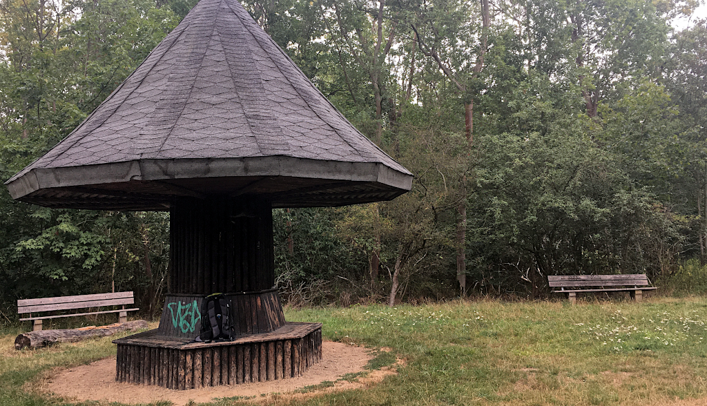 Danach gehe ich durch die westlichen Ausläufer von Rückmarsdorf, überquere die B181 und komme wieder auf einen Waldweg, der mich zum Bienitz führt. Das ist wieder ein Berg von stattlichen 124m Höhe, der seit 5000 Jahren besiedelt ist (Wikipedia). Er wurde während mehrerer Kriege militärisch genutzt und schließlich baute der sächsische König 1891 dort eine Schießstände. Damit begann seine eher unrühmliche Geschichte während der Zeit des Nationalsozialismus und in der DDR.