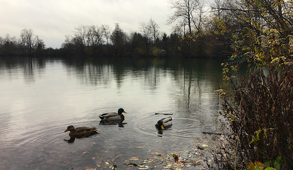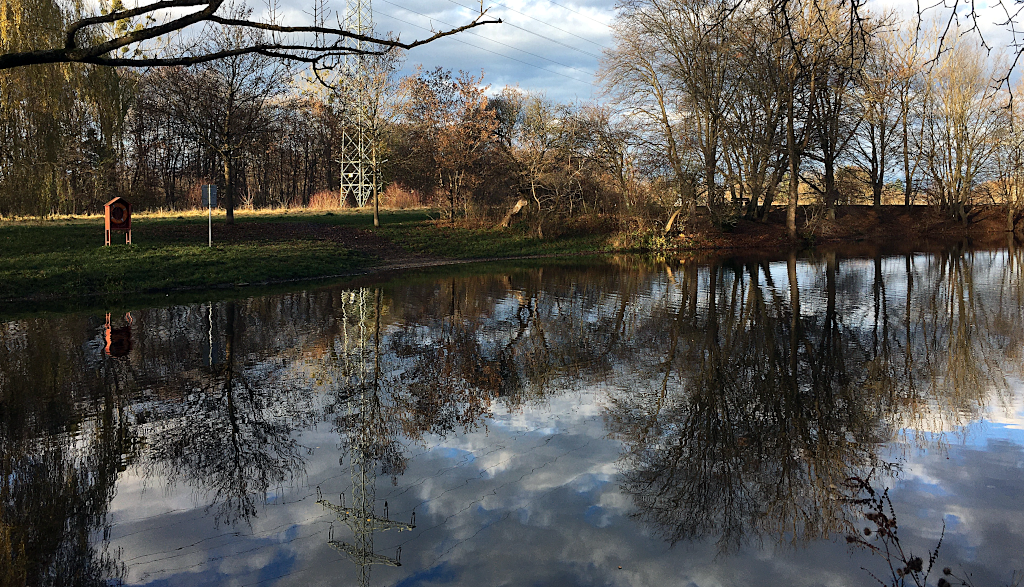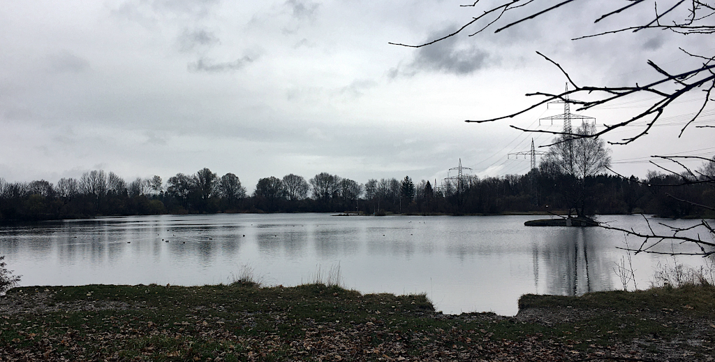 Die Freude ist groß! Und die Überraschung noch größer, als ich ein paar Schritte weiter zum Böhmerweiher komme. Das ist ein herrlicher kleiner Baggersee, der wohl im Sommer auch zum Baden einladen würde. Heute ist es am See fast menschenleer und ich habe einen herrlichen Blick über das Wasser.