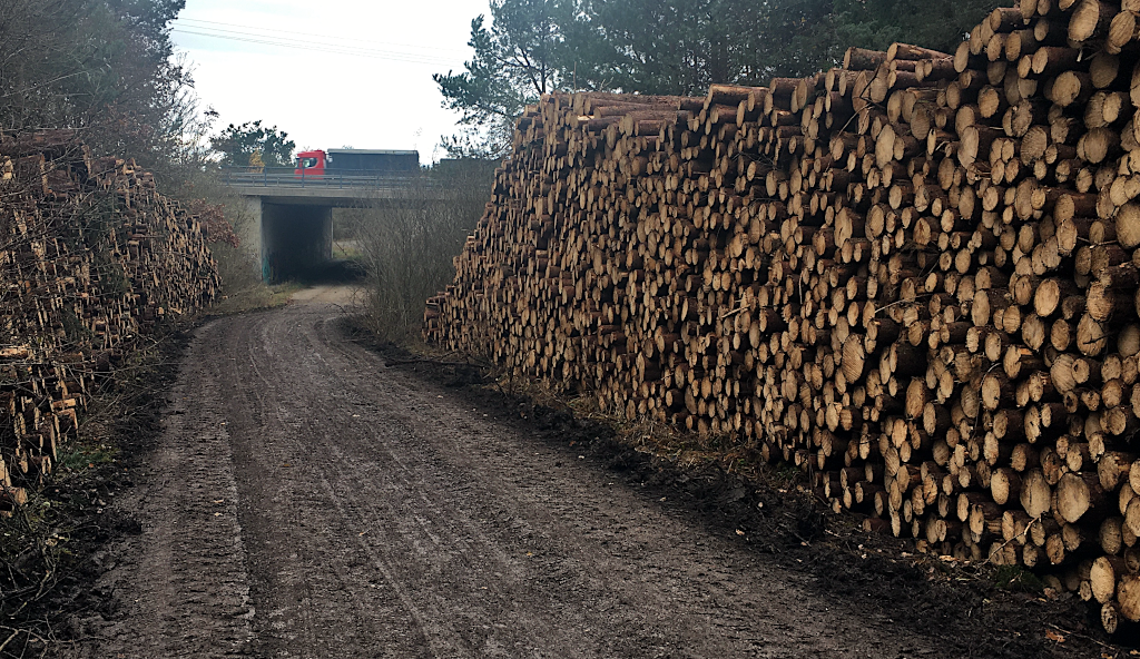 Ich durchwandere nur den nördlichsten Teil des Forstes. Um weiter der Stadtgrenze zu folgen, muss ich mich bald in Richtung Norden halten. Dafür kreuze ich wieder die A 96.