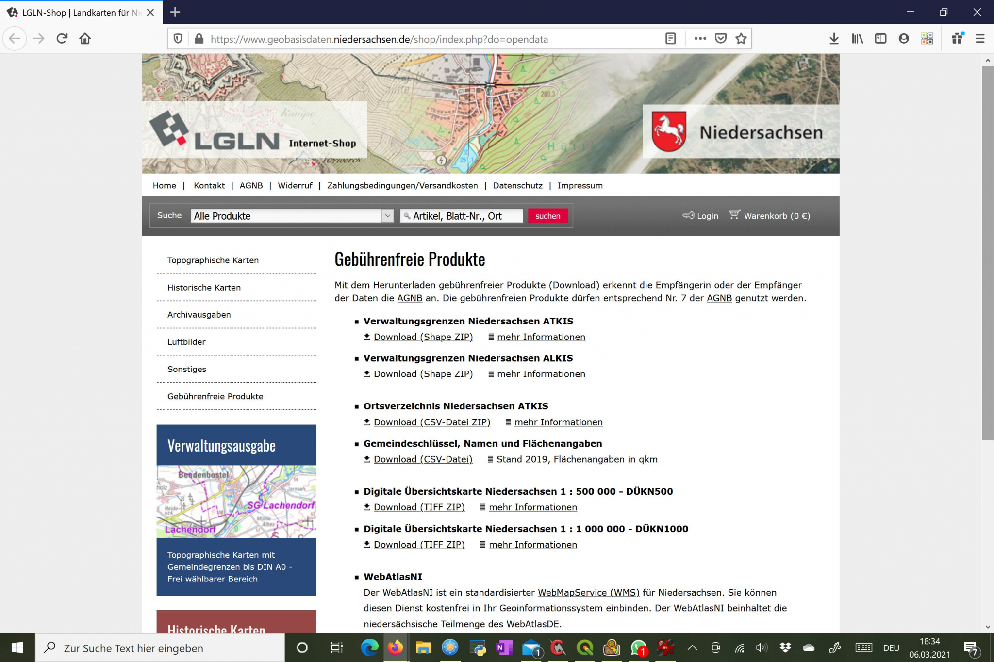Hier können die Geodienste  der Bundesländer helfen. Diese stellen Portale mit Karten für Wirtschaft und Freizeit zur Verfügung. Herunterladbare Karten sind in der Regel kostenpflichtig, aber die Verwaltungsgrenzen aus dem "ATKIS", dem "Amtlichen Topographisch-Kartographischen Informationssystem"  konnten wir zum Download finden.
