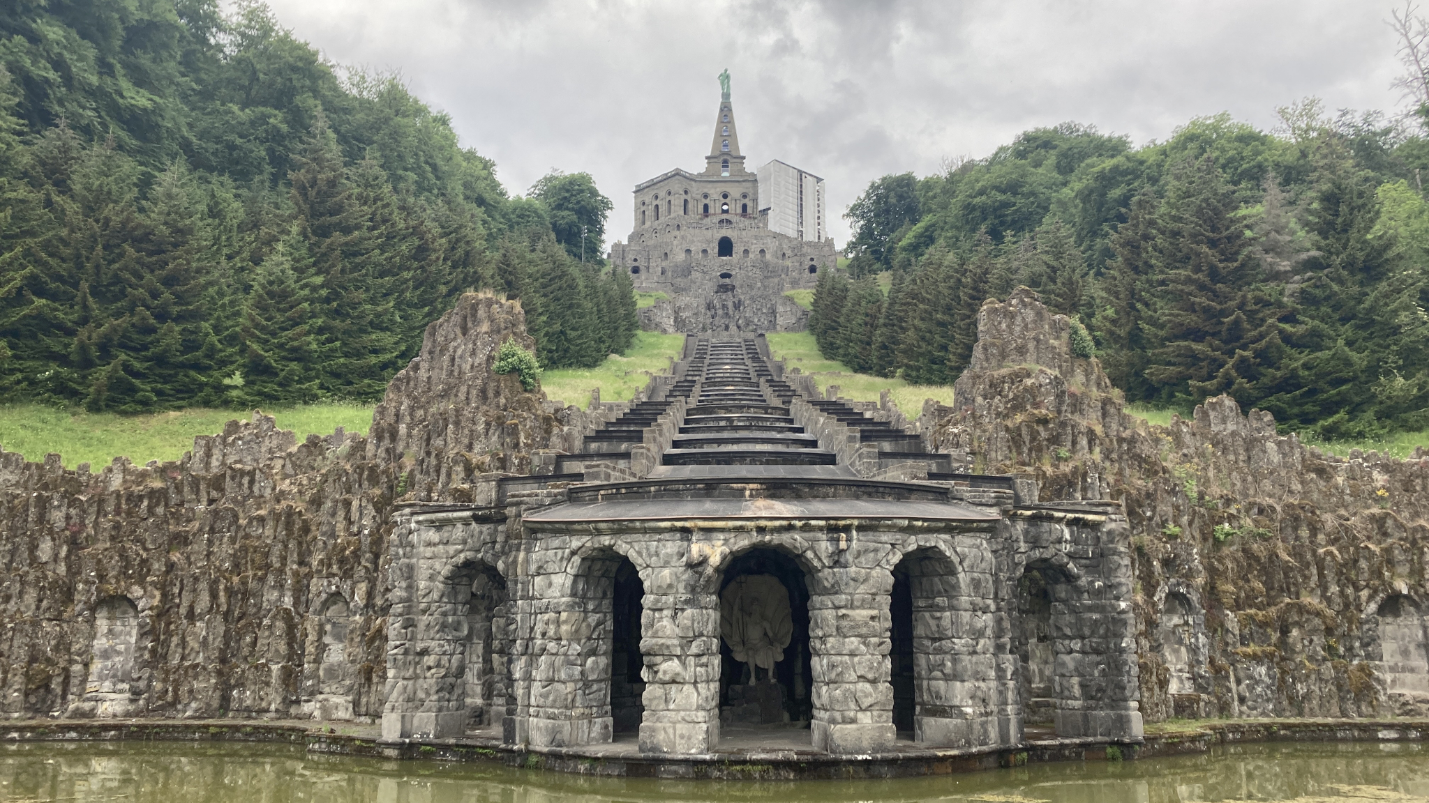 Kaskaden unter dem Herkules Mit 530m Höhe der Herkules fast der höchste Punkt der Wanderung. Der Weg nach oben führt über 535 Treppenstufen (wir gehen auf der linken Seite hoch, sonst wären es 539). Außer Atem kommen wir am Oktogon, auf dem die Herkules-Statue steht, an. Normalerweise ist es hier sehr voll, aber wie eben schon vermutet, kommen die Touristen erst zu späterer Stunde.
